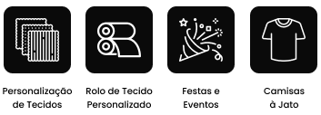 Oferecemos o que há de mais qualitativo e econômico em impressão digital em tecido na composição de poliéster ou suas misturas, menos viscose com ou sem elastano em qualquer gramatura. Impressão sublimática digital e transferência na calandra de desenhos com padronagem e rapport sem limite de proporção da imagem. Largura máxima de impressão útil: de 1,56 m até 1,76 m (1,76 m sob encomenda). Produção mínima: a consultar conforme avaliação da imagem e o tecido desejado. (Enviando o Tecido em rolo).