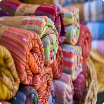 Na decoração de interiores em cortinas, toalhas, guardanapos, colchas, cadeiras, sofás, almofadas, etc.
